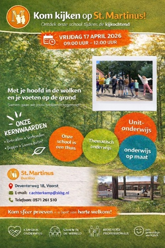 Welkom op de website van de Basisschool St.Martinus in Bussloo, een kleinschalige, gezellige school in een groene omgeving omringd door bos en weiland. Met rust en ruimte om volop te kunnen spelen, leren en ontdekken in een natuurlijke omgeving. Een school waar je zowel binnen als buiten kunt leren.